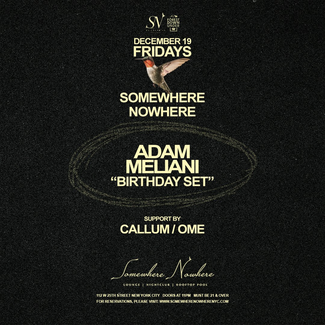 On Friday, December 19th, Somewhere Nowhere NYC presents Adam Meliani w/ Callum and Ome.