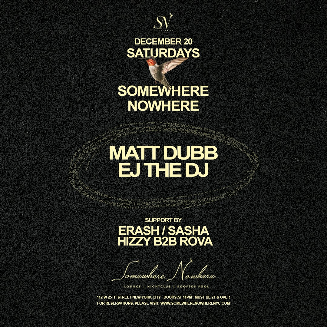 On Saturday, December 20th, Somewhere Nowhere NYC presents Matt Dubb x EJ The DJ.