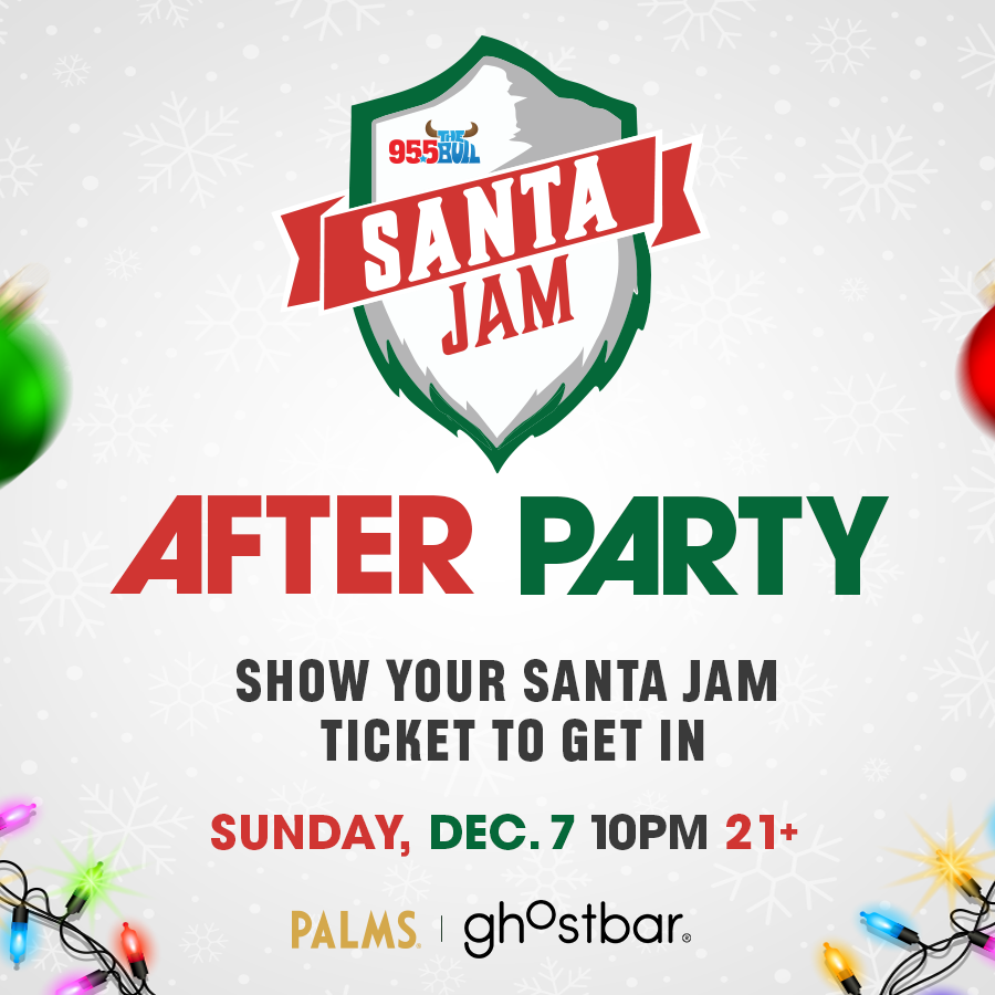 The official after party for 95-5 The Bull's Santa Jam! Kick the dust up with drink specials and surprise performances from some of the stars for Santa Jam, along with the best views in Las Vegas!