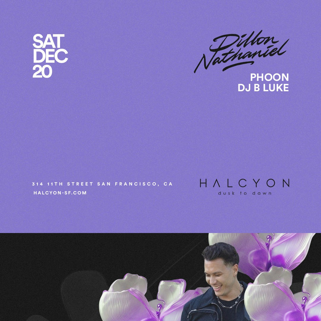 DILLON NATHANIEL the dynamic producer and dance floor destroyer returns for a night of heated house and techno! PHOON + DJ B LUKE support the dance music connoisseur! Presented by Halcyon. This is a 21+ event