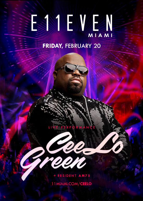 CeeLo Green at E11EVEN Friday, February 20. #1 Club in the USA, #6 Globally by Nightlife International Association.