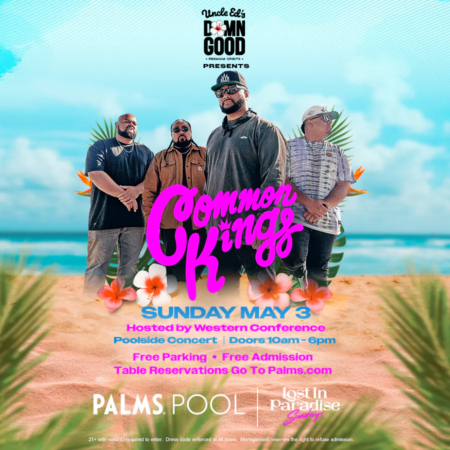 Welcome to "Lost in Paradise Sunday Concerts " Doors open at 10am with Uncle Ed's Damn Good Vodka cocktail and bottle features all day. Kicking off our concert series today are the Common Kings live on stage. Enjoy relaxing in your own Upper Level Bungalow with semi-private plunge pool or partying poolside on a chaise lounge. Entertainment subject to change. Management Reserves all rights