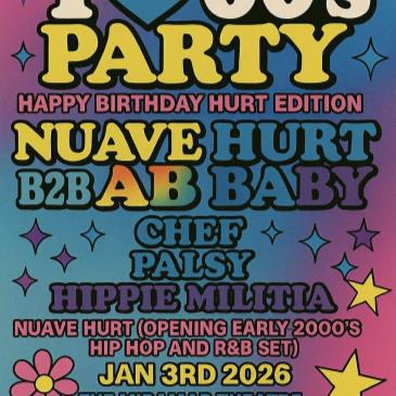 Come with us as we celebrate Nuave Hurts birthday with this 3rd edition of the Surf Club! Early 2000’s themed fashion is suggested not required! NUAVE opening the night with a early 2000’S themed hip hop and R&B with some dope dubstep and more thru out the night as we have HIPPIE MILITIA CHEF PALSY AND AB BABY GOING B2B WITH NUAVE HURT to end the night off strong! Come help us celebrate with HURT!