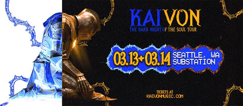 Substation presents: Two Nights of Kaivon: The Dark Night of the Soul Tour w/ support from Valleys Edge Elyxir Music @ 10:00 pm. 21+ only. see you there!