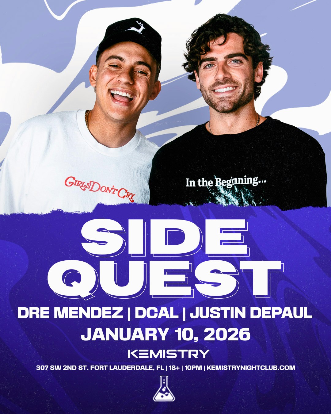 SIDEQUEST returns to Kemistry Nightclub for an incredible night. Get ready to come bond with us! For table reservations please email/text: VIP@kemistrynightclub.com (954) 297- 9255 Presented by Kemistry. This is an 18+ event