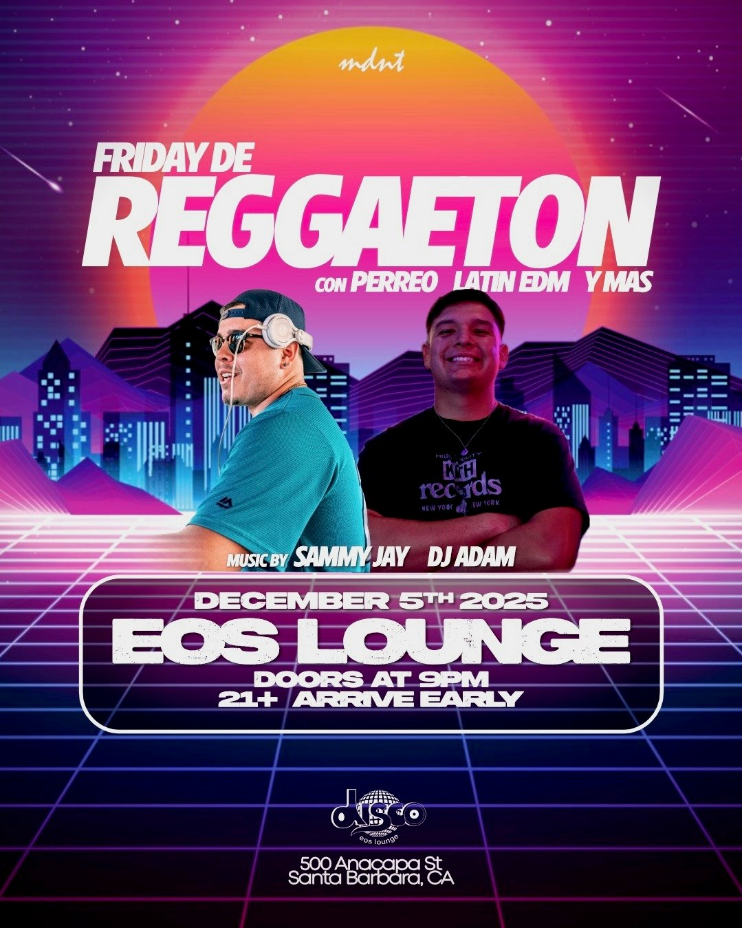 Continuing the holiday season with an MDMT takeover ☃️ Enjoy sounds in our main room and calming tunes in our cozy little bar on December 5TH! Presented by EOS Lounge. This is a 21+ event