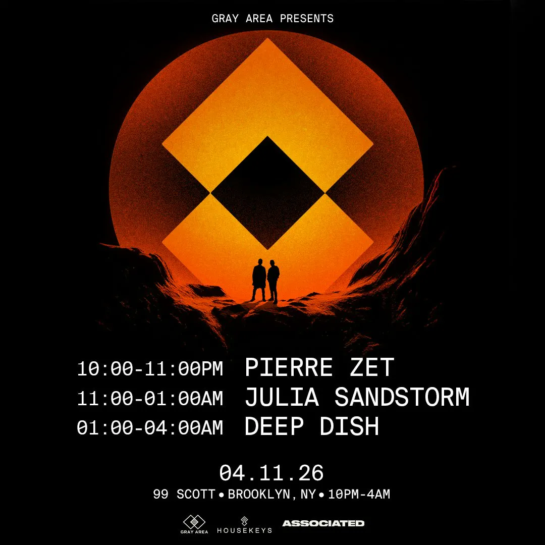Deep Dish, Julia Sandstorm, and Pierre Zet come together at 99 Scott on April 11th, 2026 for a special night in Brooklyn. One half of Deep Dish is Dubfire, who alongside Sharam helped shape the sound of house and techno for decades. Their 1998 album Junk Science marked a turning point in dance music, with tracks like “The Future of the Future (Stay Gold)” and “Stranded,” alongside a Grammy winning remix of Dido’s “Thank You” and work with Madonna and Janet Jackson.