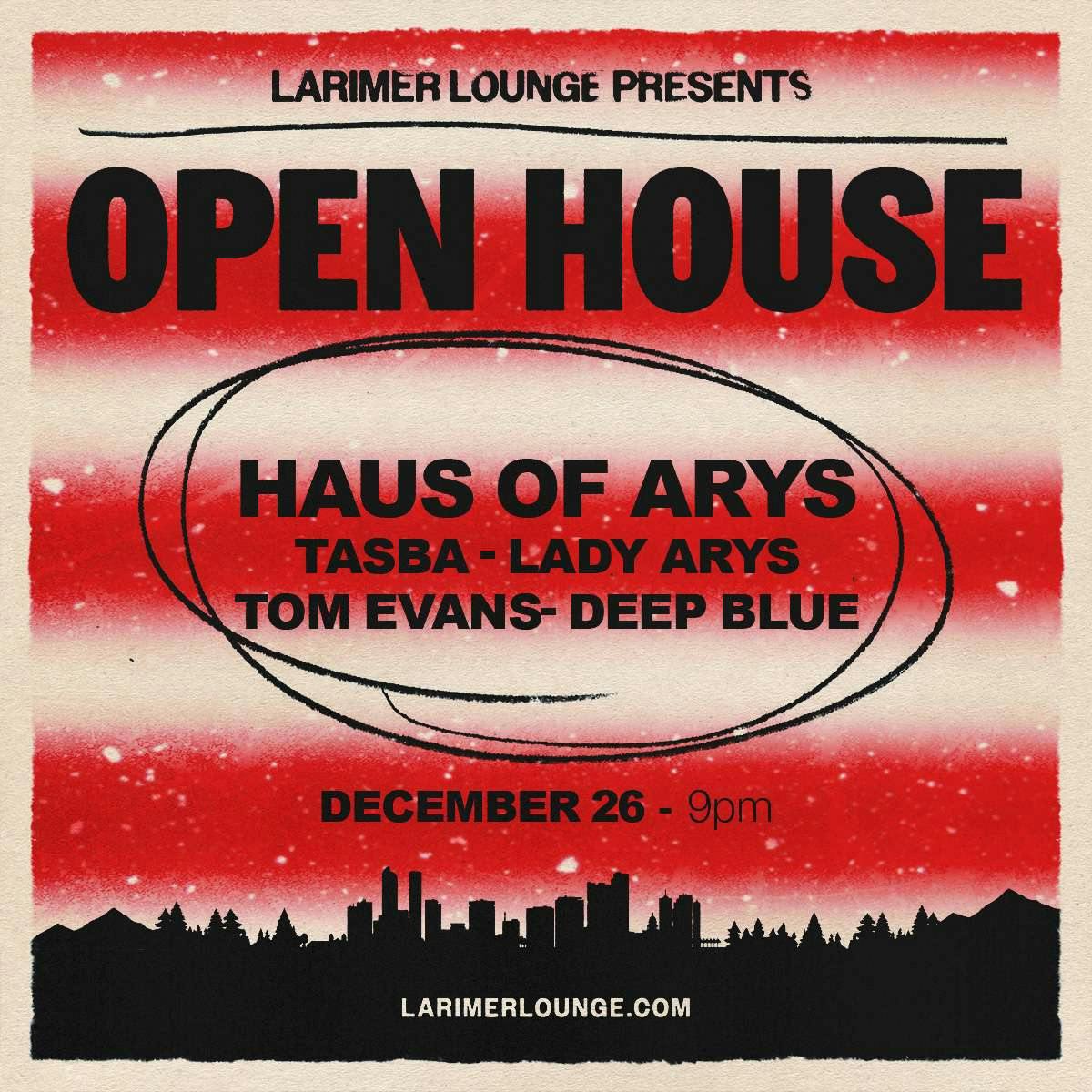 Haus of Arys presents Open House Featuring Tasba, Lady Arys, Tom Evans and Deep Blue (FREE BEFORE 11) on Friday, December 26th.