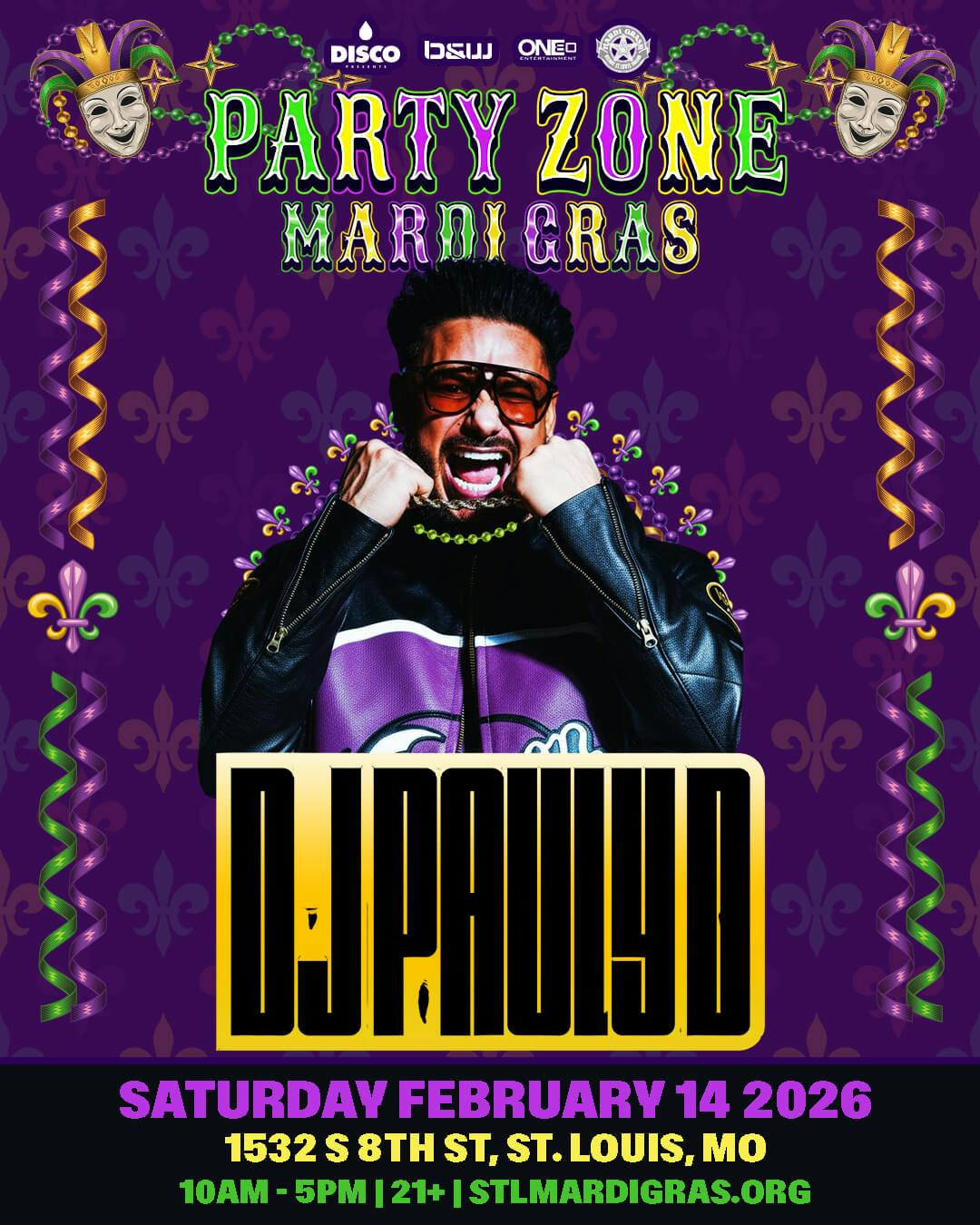 DJ Pauly D at Mardi Gras Party Zone in Saint Louis, Missouri on Saturday, February 14, 2026.