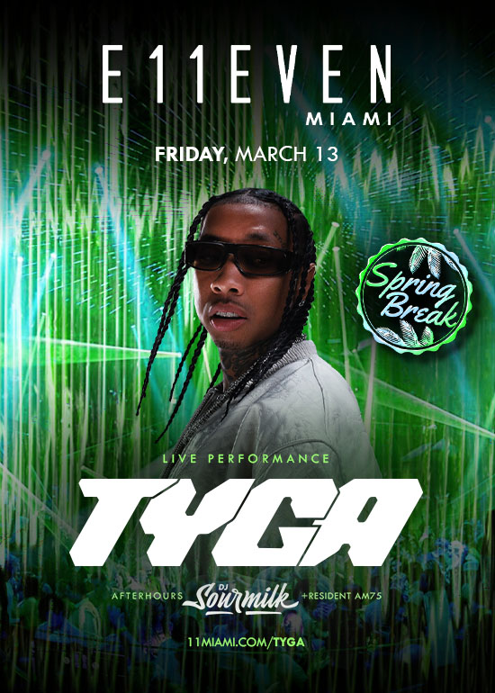 Tyga live performance at E11EVEN Friday, March 13. #1 Club in the USA, #6 Globally by Nightlife International Association.