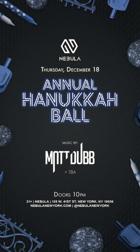 HANUKKAH BALL @ NEBULA Thursday 12/18