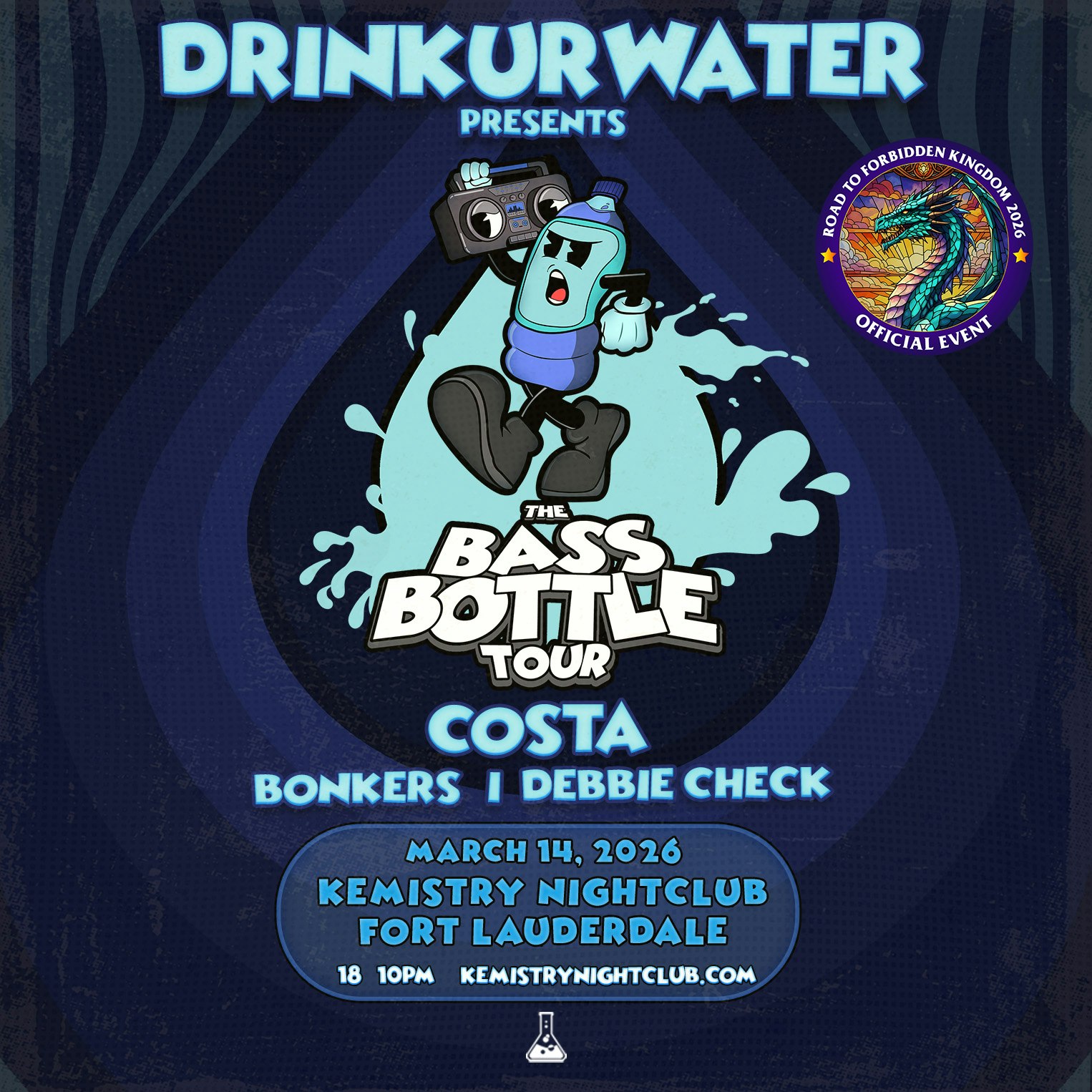 DRINKURWATER are coming to Kemistry Nightclub for an unforgettable night. Get ready to come bond with us! For table reservations please email/text: VIP@kemistrynightclub.com (954) 297- 9255 Presented by Kemistry. This is an 18+ event