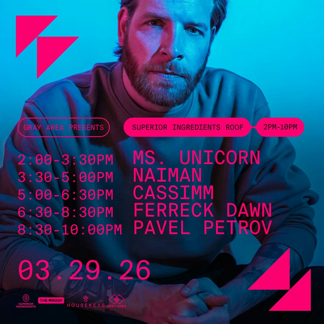 On March 29th, Ferreck Dawn heads to the Rooftop at Superior Ingredients for a special open-air session in Brooklyn. UK-based CASSIMM, Bulgarian-talent Pavel Petrov, Naiman, and Ms. Unicorn are also on the Gray Area decks.
