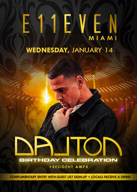 Dalton Birthday Celebration at E11EVEN Wednesday, January 14.. Complimentary Entry with Guest List Signup + FL locals receive a drink. #1 Club in the USA, #6 Globally by Nightlife International Association.