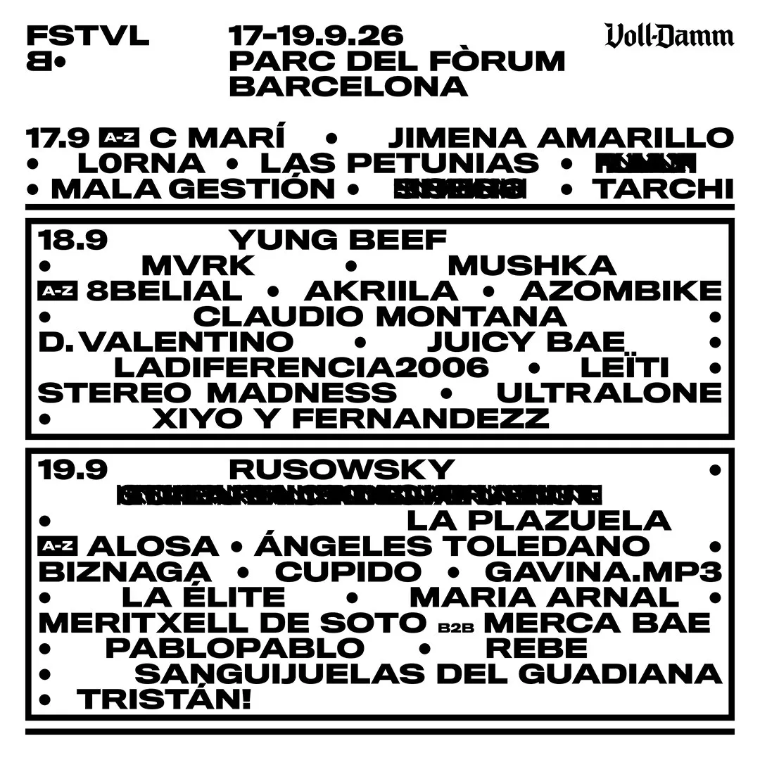 rusowsky • ? • Yung Beef • La Plazuela • mvrk • Mushka • D.Valentino • Sanguijuelas del Guadiana • pablopablo • Maria Arnal • Akriila • Alosa • 8belial • Cupido • Juicy Bae • l0rna • La Élite • Biznaga • C Marí • Claudio Montana • Xiyo y Fernandezz • Ángeles Toledano • ? • Rebe • gavina.mp3 • Jimena Amarillo • ladiferencia2006 • Las Petunias • Leïti • Mala Gestión • Meritxell de Soto b2b Merca Bae • ? • tarchi • TRISTÁN! • ultralone • Stereo Madness • Azombike