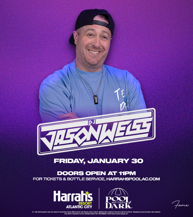Friday Night at The Pool After Dark, Harrah's Resort, Atlantic CityDive into the ultimate Atlantic City nightlife experience at The Pool After Dark with music by DJ JASON WEISS, located inside Harrah's Resort!