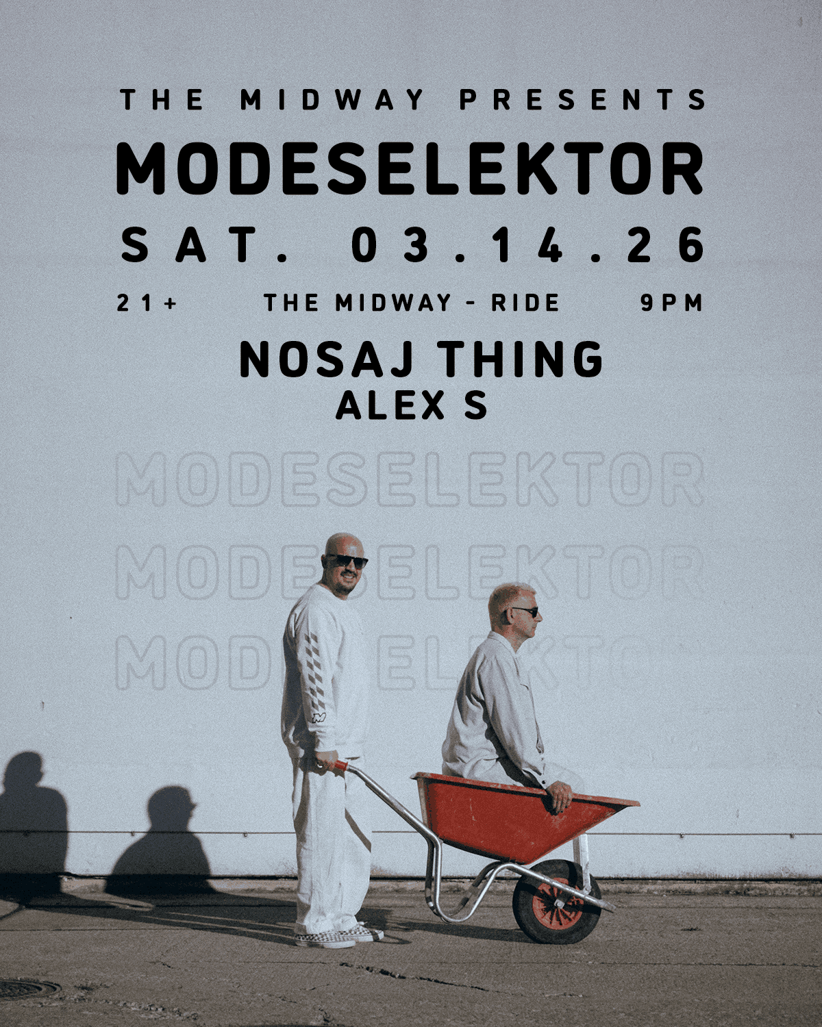 Saturday, March 14 The Midway presents: Modeselektor Nosaj Thing Alex S RiDE 21+ Event, Doors @ 9PM 900 Marin St., San Francisco