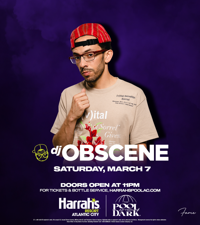 Saturday Night at The Pool After Dark, Harrah's Resort, Atlantic CityDive into the ultimate Atlantic City nightlife experience at The Pool After Dark with music by DJ OBSCENE, located inside Harrah's Resort!