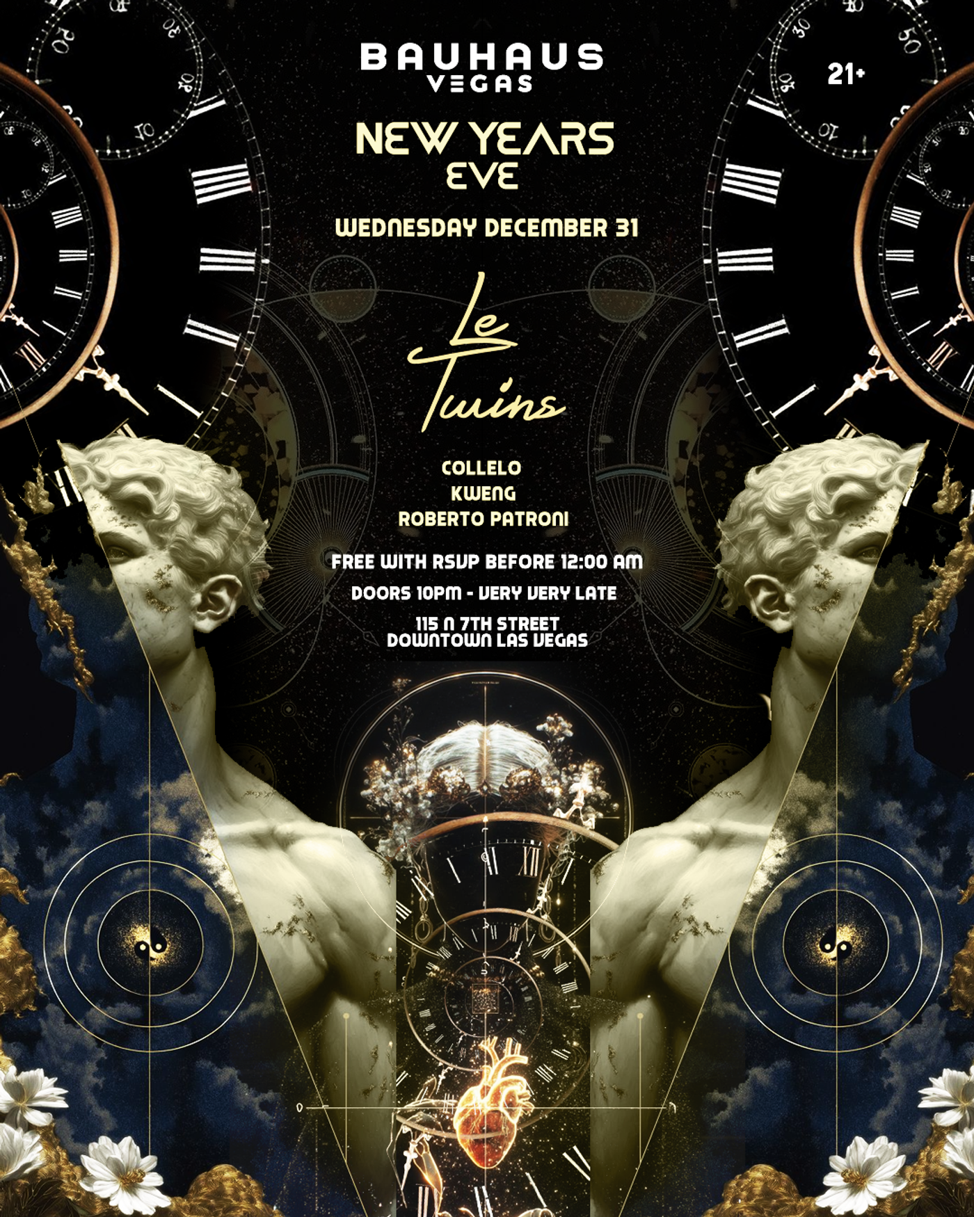 Le Twins return to the decks at Bauhaus Vegas this NYE with their explosive tech-house and Latin-driven sounds. Heavy drops, high-voltage energy, and a twin-powered stage presence like no other. The countdown to 2026 just got a whole lot louder.