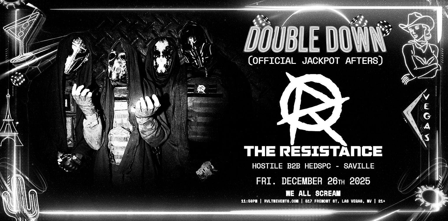 THURSDAY | 12.26.26 | 11:59PM DOUBLE DOWN w/ THE RESISTANCE OFFICAL JACKPOT AFTERS Make your way to Downtown Las Vegas' to WE ALL SCREAM for THE RESISTANCE. This is an 21+ event with a fully stocked bar. 21+ Event