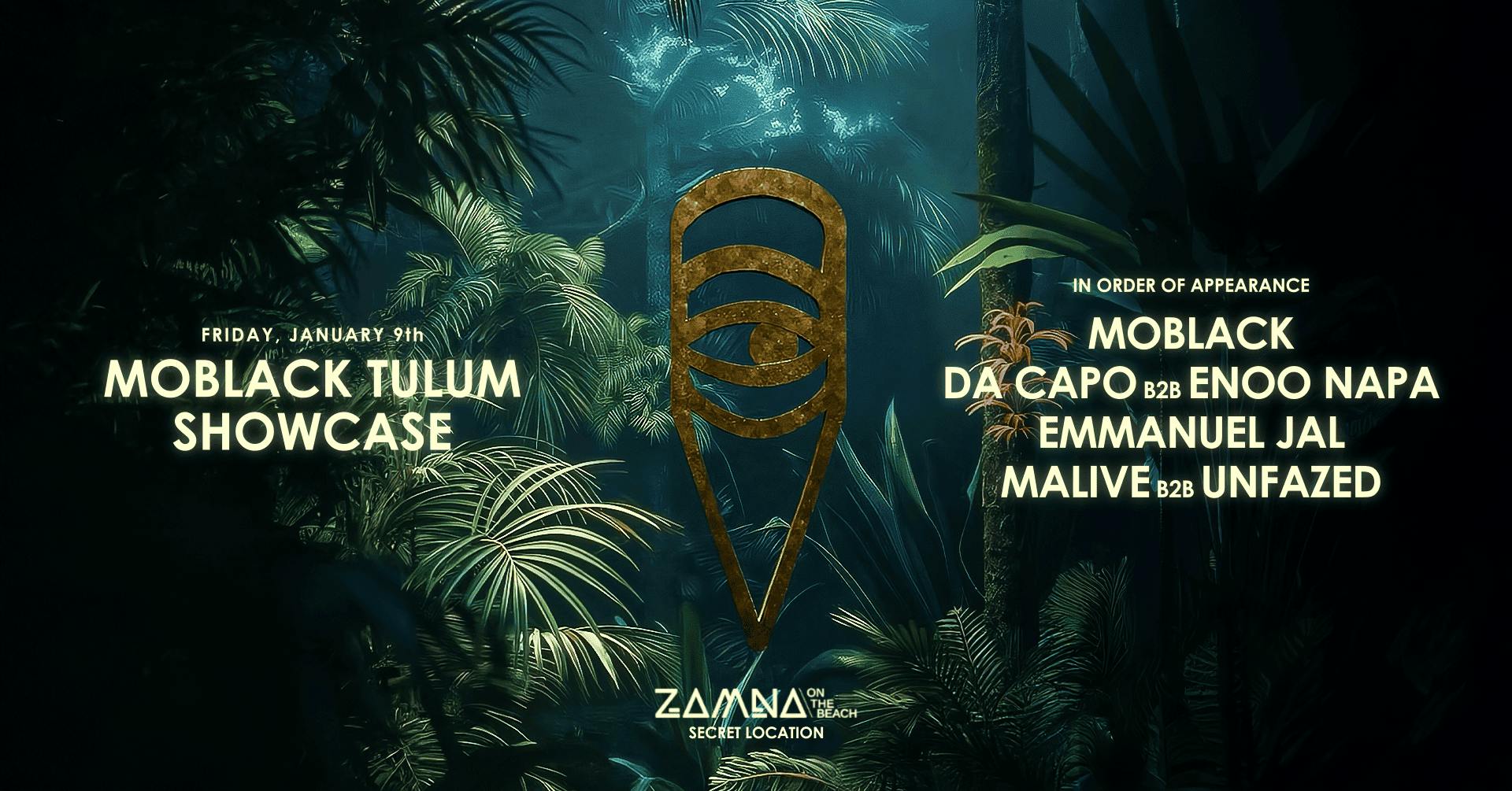 On January 9, 2026, Zamna on the Beach welcomes one of the most distinctive voices in the global electronic scene as MoBlack takes over the shoreline for a powerful sunset to night experience. A pioneer of Afro House and a key figure behind some of the genre’s most influential releases, MoBlack brings his deep, hypnotic rhythms to Tulum’s iconic beach setting.