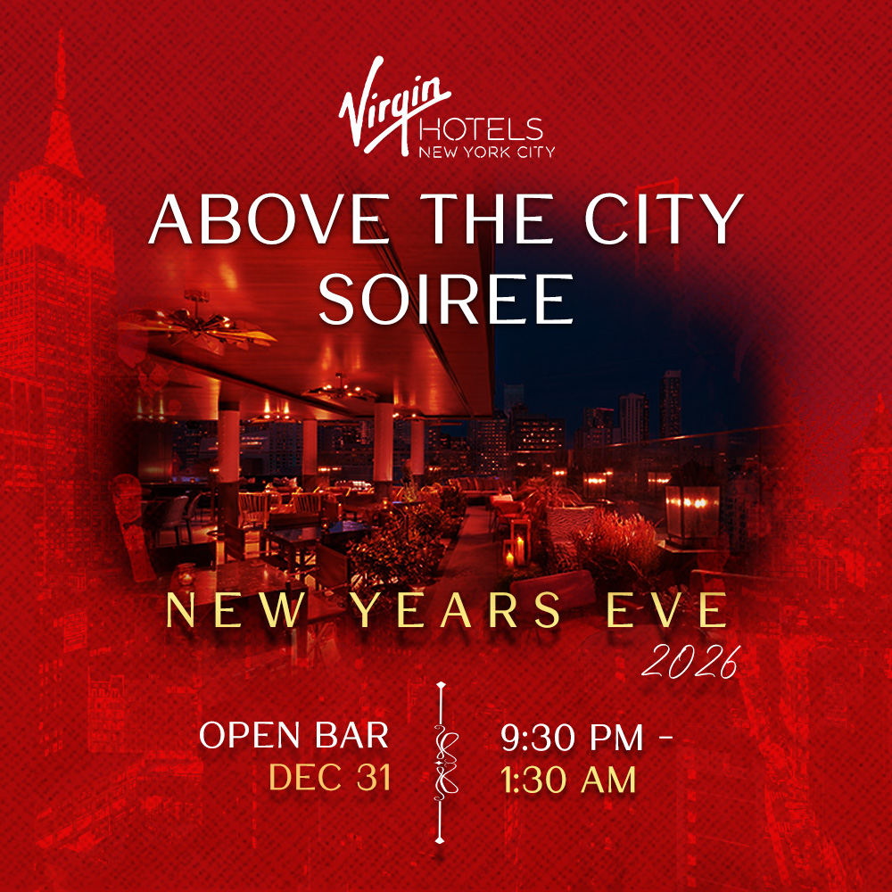 Celebrate NYE 26 high above Manhattan at Virgin Hotels New York, a striking and stylish venue overlooking the city with sweeping skyline views. This New Year’s Eve is crafted for guests who crave refinement, energy, and a modern luxury experience in one of Midtown’s most impressive spaces. With bold architecture, polished interiors, and the signature Virgin atmosphere, the Above The City Soiree sets the stage for an unforgettable night.