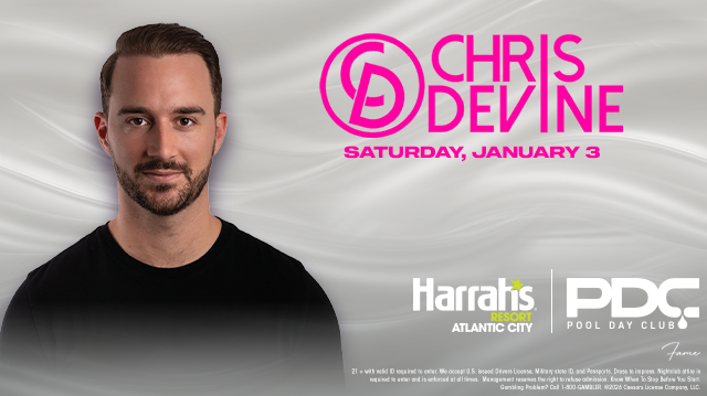 On Saturday daytime, The Pool Day Club at Harrah's Resort Atlantic City invites you to a vibrant day party with music by CHRIS DEVINE! Join us for an unforgettable pool party experience at Harrah's Resort, where the sun, beats, and good vibes collide.