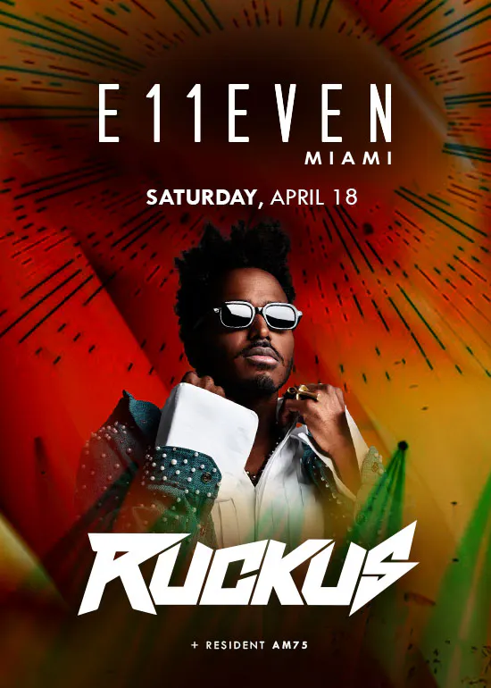 DJ & Producer Ruckus at E11EVEN Saturday, April 18. #1 Club in the USA, #6 Globally by Nightlife International Association.