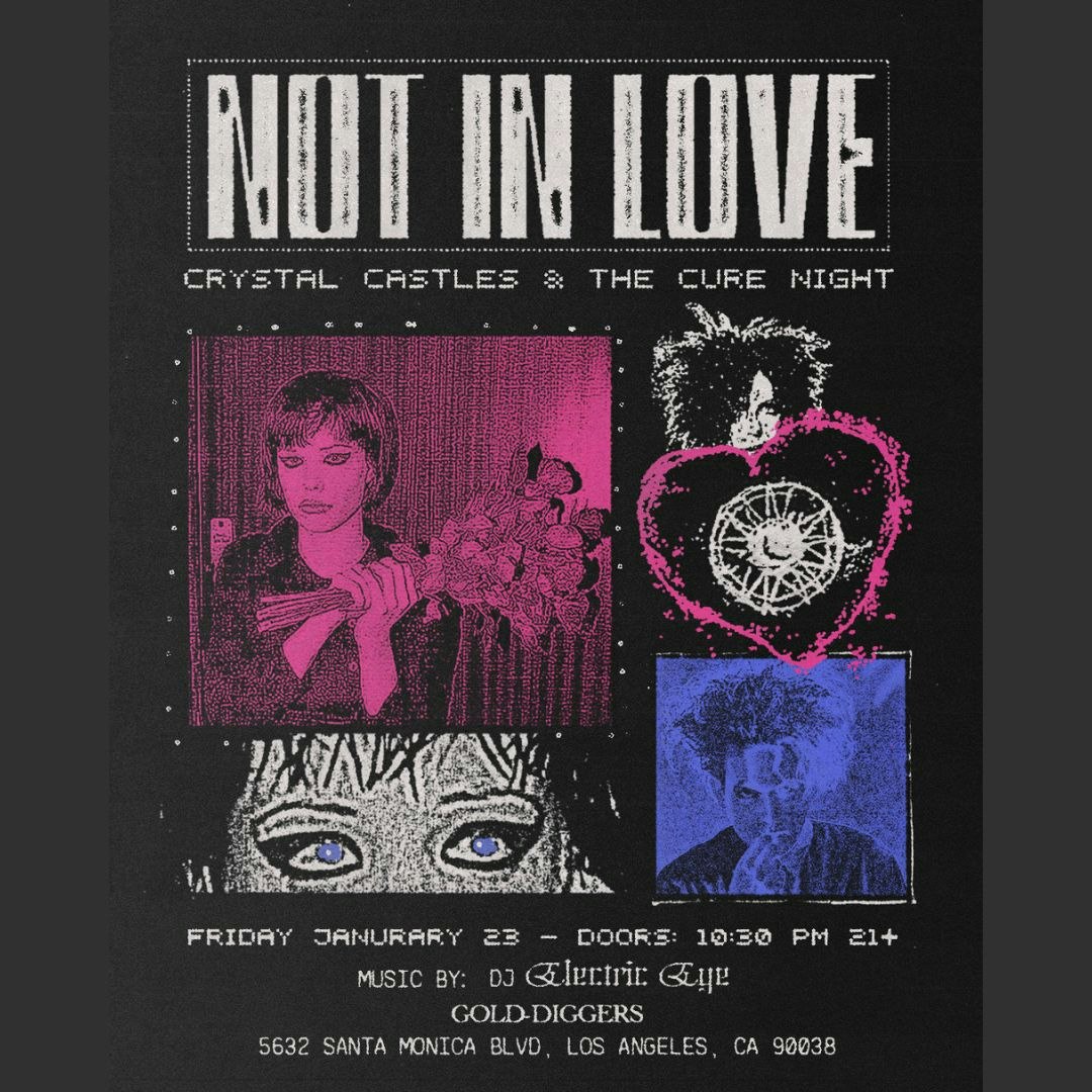 NOT IN LOVE Crystal Castles & The Cure Night Music by Dj Electric Eye 5$ adv 10$ dos Presented by Gold-Diggers. This is a 21+ event