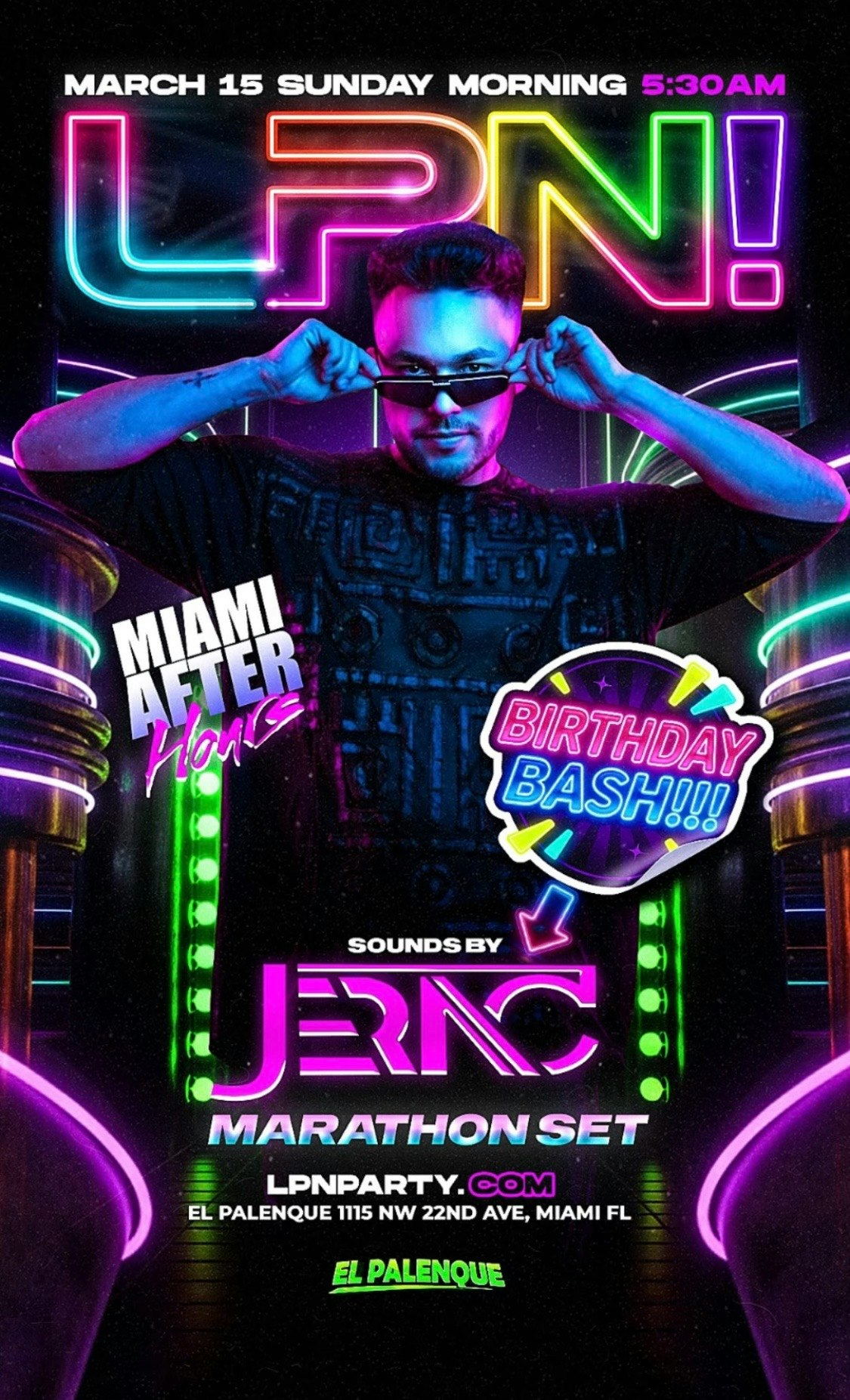 Join us Sunday Morning for LPN! JERAC's BDAY BASH!! Celebrating DJ JERAC'S BDAY BASH! MARATHON SET! Doors Open at 5:30AM El Palenque Nightclub Presented by Work Entertainment. This is a 21+ event.