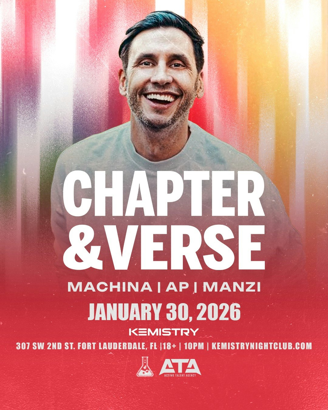 CHAPTER & VERSE are coming to Kemistry Nightclub for an unforgettable night. Get ready to come bond with us! For table reservations please email/text: VIP@kemistrynightclub.com (954) 297- 9255 Presented by Kemistry. This is an 18+ event