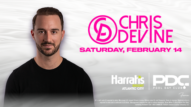 On Saturday daytime, The Pool Day Club at Harrah's Resort Atlantic City invites you to a vibrant day party with music by CHRIS DEVINE! Join us for an unforgettable pool party experience at Harrah's Resort, where the sun, beats, and good vibes collide.