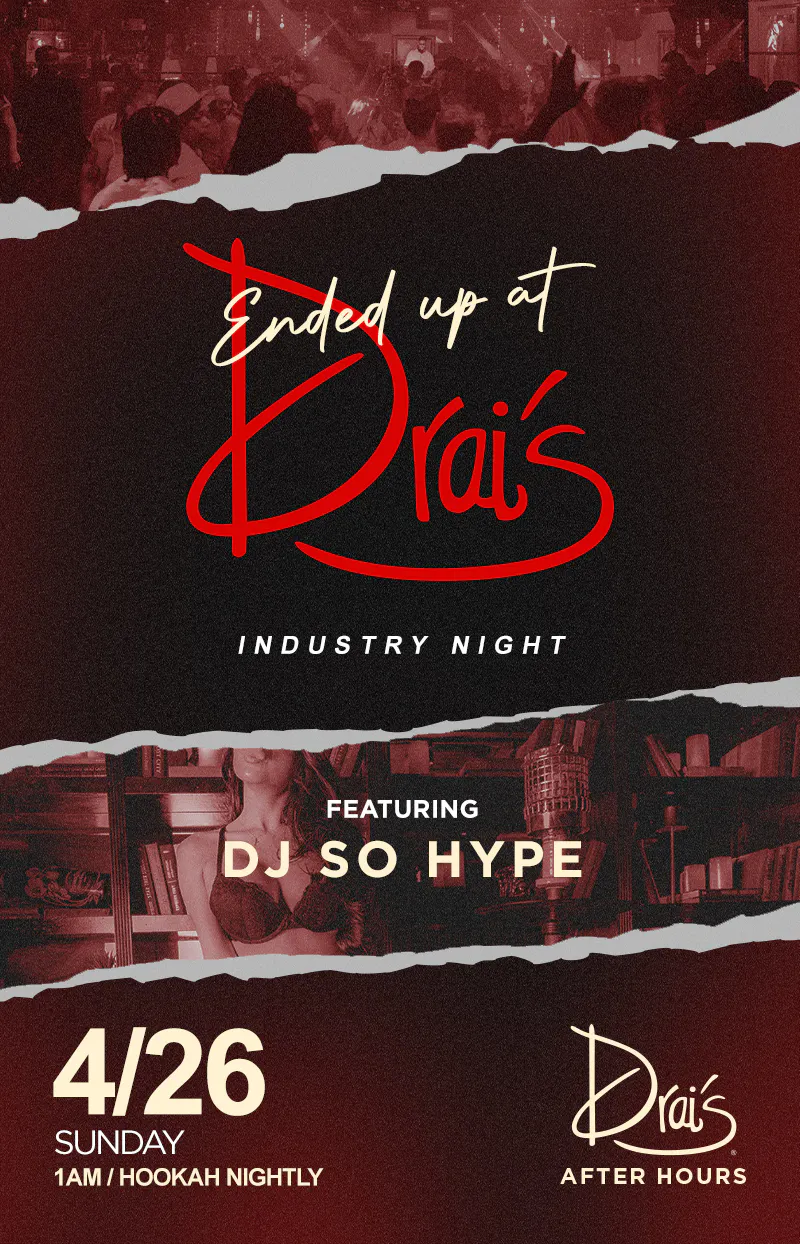 Sunday night means Industry Night at Drai’s After Hours. Late-night beats, high energy, and hookah available all night