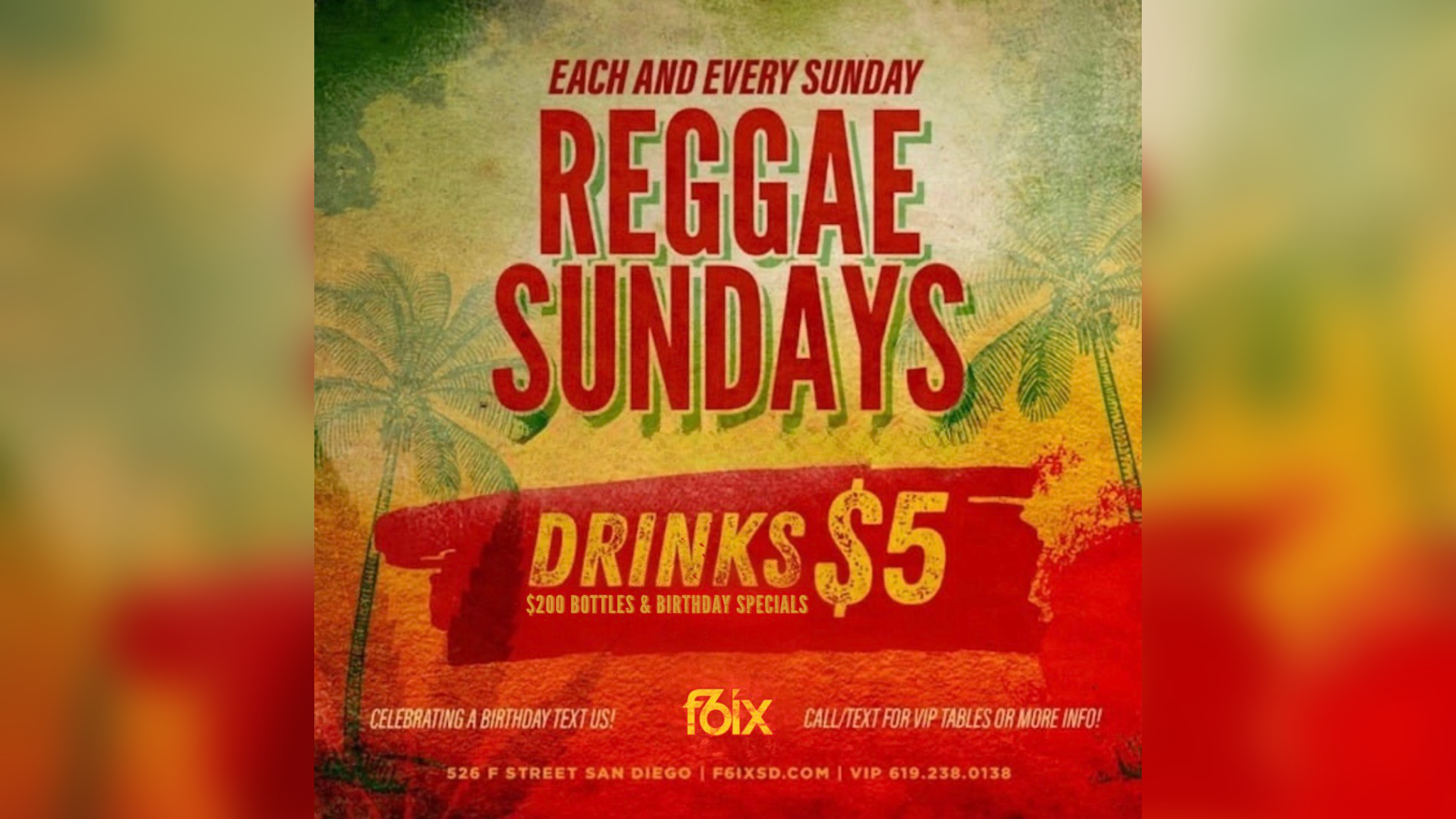 Join us every Sunday at F6ix for Reggae Sundays!