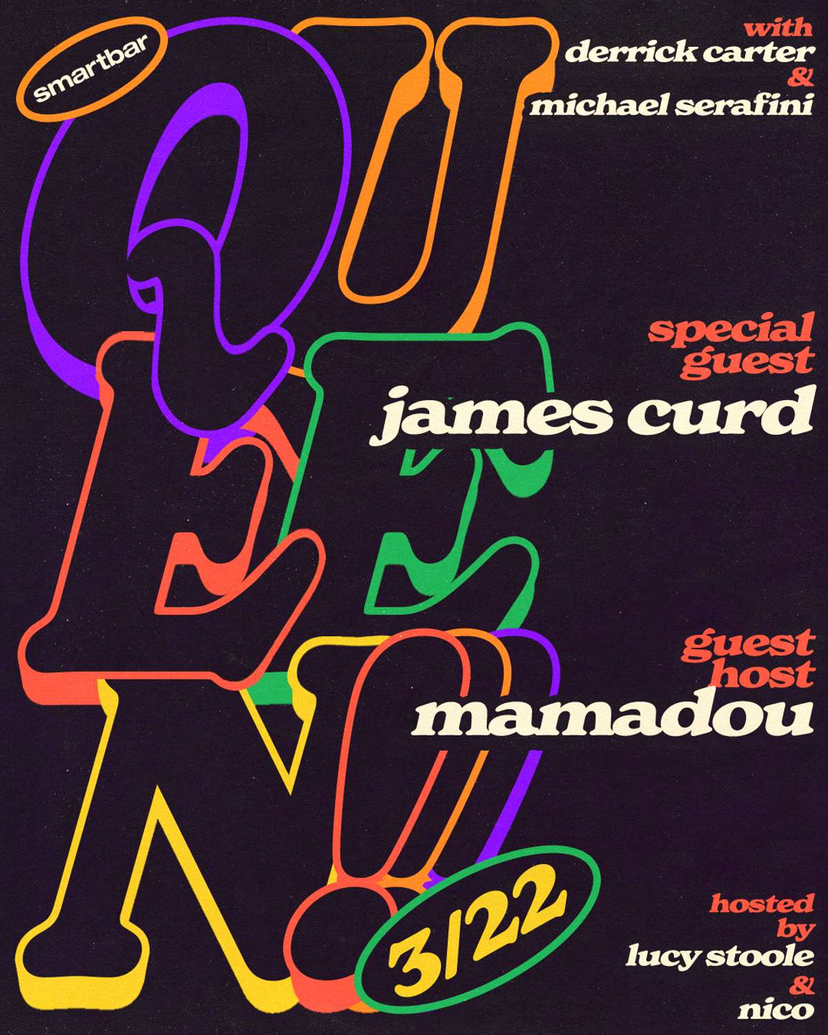 Queen! Featuring: Derrick Carter * James Curd * Michael Serafini Hosted by Lucy Stoole * Nico Guest Host: Mamadou 21 & Over. Valid State or Federal ID required for entry Doors open at 10:00 PM