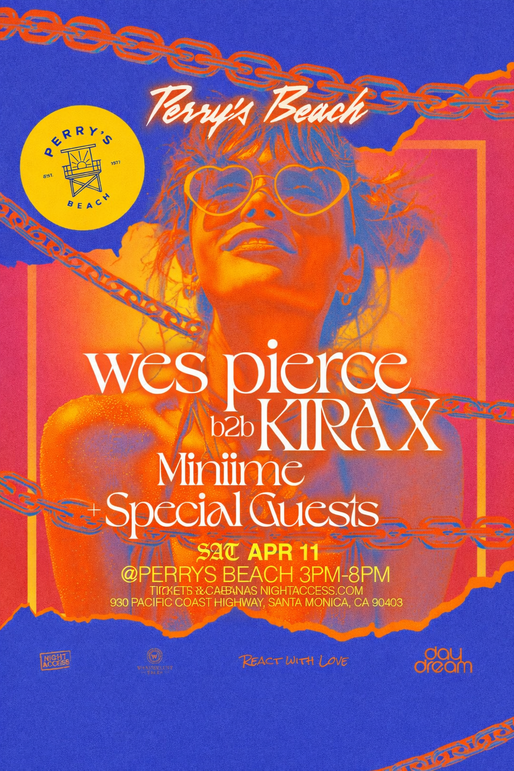 wes pierce b2b KIRA X • opening set by Miniime • LA’s Hottest Beach Club w/Special Guest entertainment throughout the year ☀️
