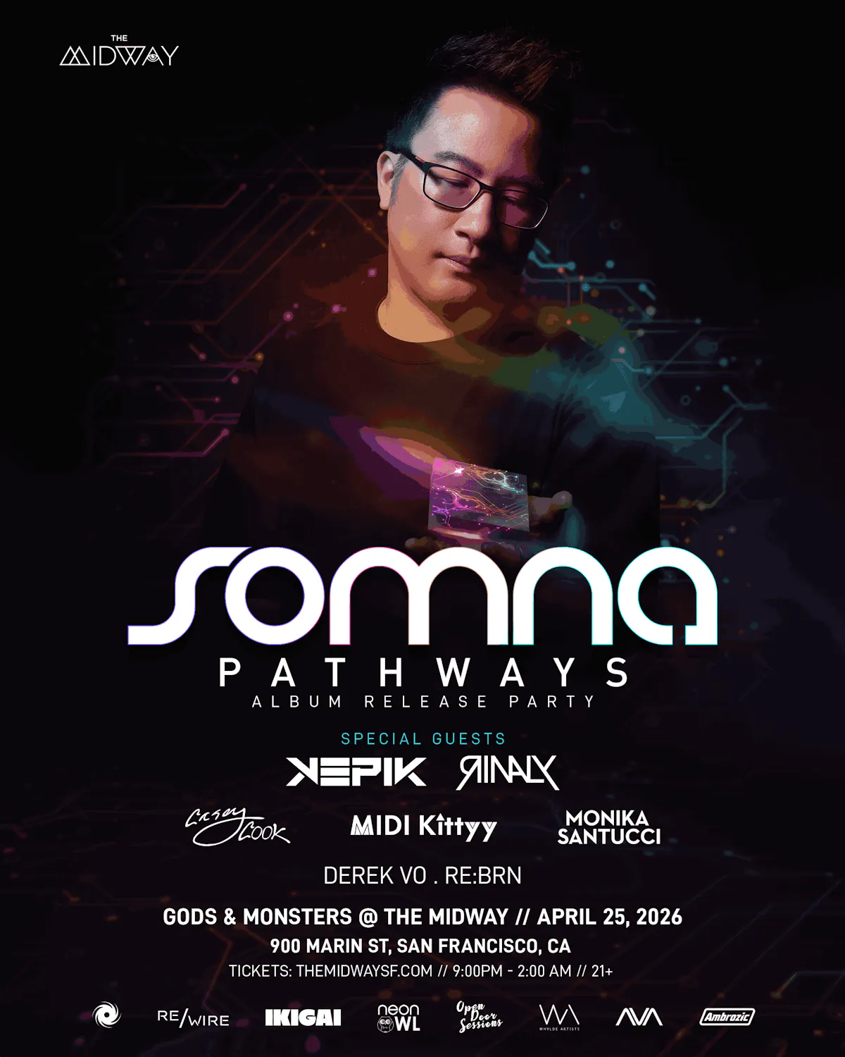Join Somna for his biggest headline show to date, celebrating the release of their third artist album, Pathways. This special night at The Midway SF will bring the album to life in an immersive live setting.
