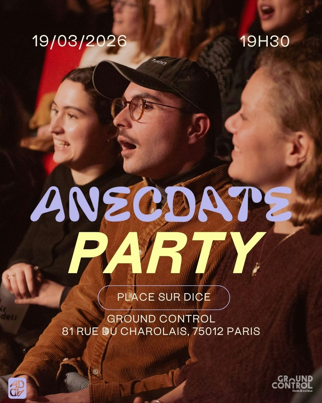 **đ Anecdate Party investit Ground Control pour une soirĂ©e collective, vivante et engagĂ©e autour de lâamour, des relations et des histoires vraies.**