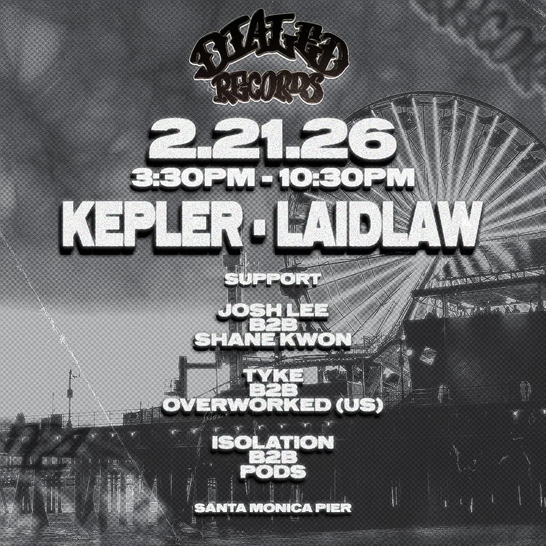 Santa Monica Pier Dialed Records Santa Monica Pier Takeover featuring Kepler & Laidlaw February 21, 2026 3:30-10:30pm Support: Josh Lee b2b Shane Kwon Tyke b2b Overworked (US) Isolation b2b Pods