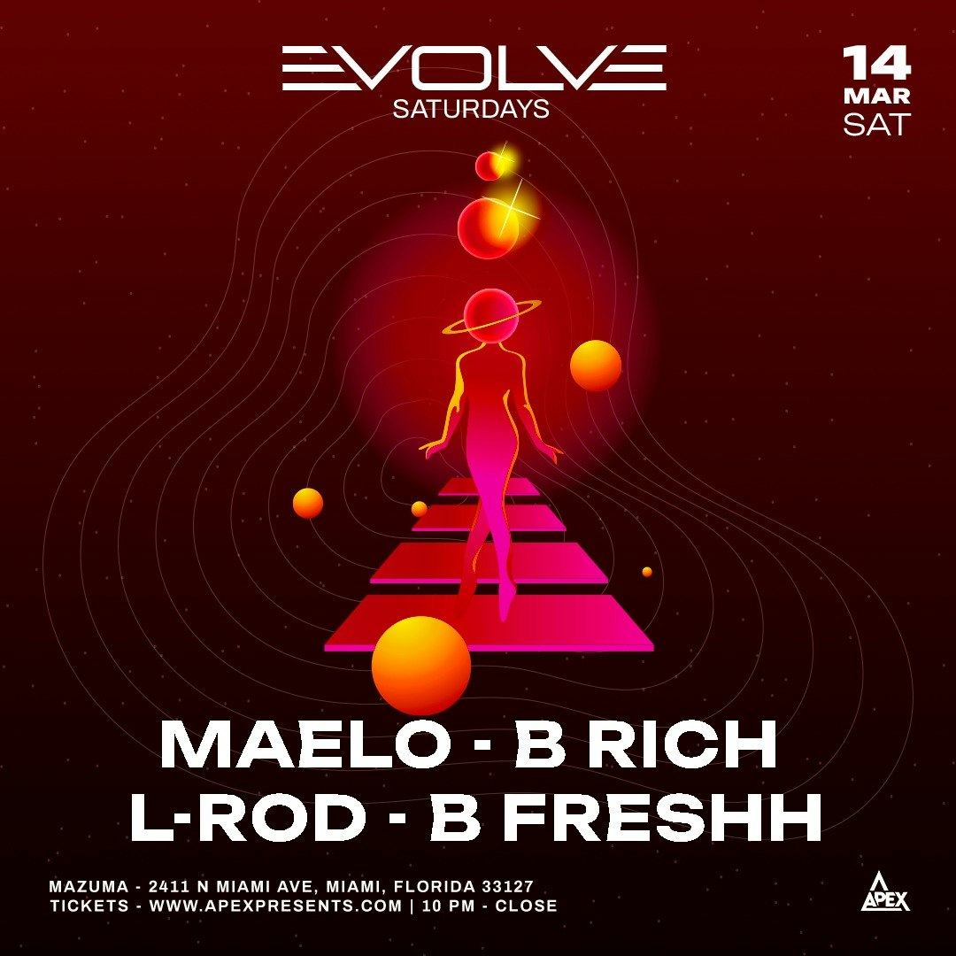 Get ready to ignite your weekends with Evolve Saturdays the brand-new nightlife experience taking over Wynwood at MAZUMA Miami! This electrifying weekly event is your new home for cutting edge electronic dance music, where top tier DJs, immersive visuals, and a high energy crowd come together to create unforgettable nights. Whether you're a house head, techno lover, or just looking to dance. Evolve Saturdays is where the pulse of Miami’s underground comes alive. Step into the sound, feel the vibe, and evolve with us every Saturday night!