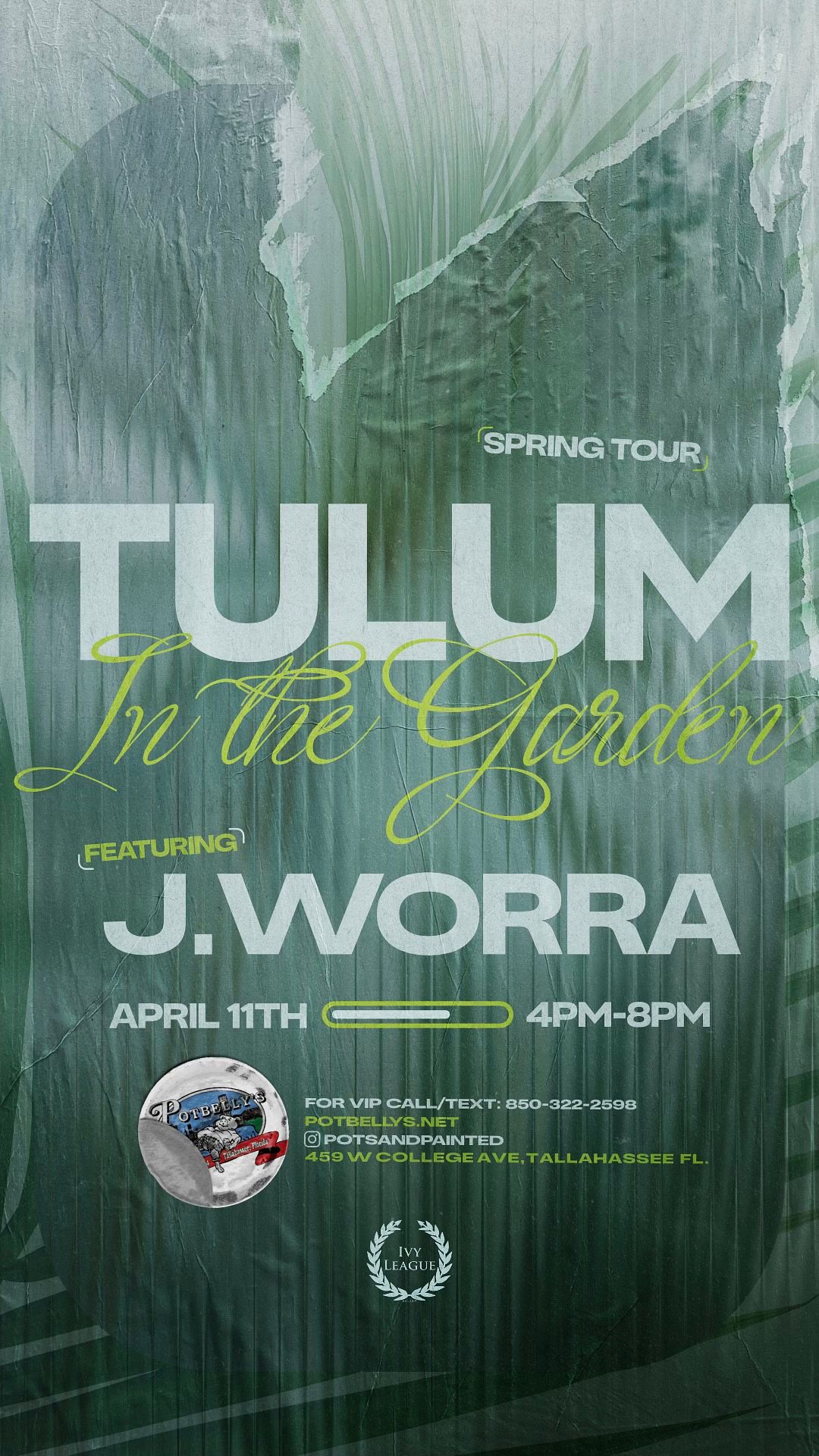 On April 11th, Potbelly's and the Ivy League team are bringing the vibes of Tulum to the Garden. Giant pool in the Garden? Check. Linen fits? Check. Immaculate vibes? Check. J. Worra is coming through on her Spring tour after lighting up Factory town and Palm Tree Club to bring some heat to make sure this new series is one for the history books.