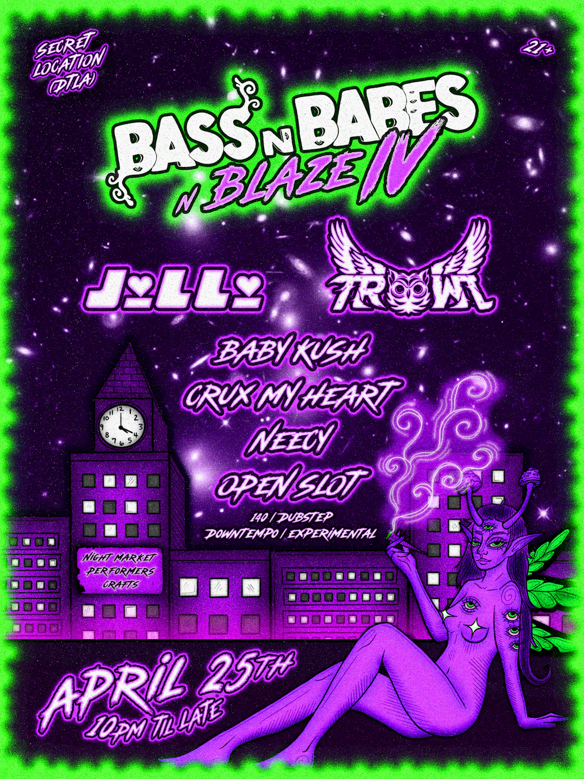 the fourth annual signature 420 event by Bass n Babes, curated specifically for queer stoner bassheads <3