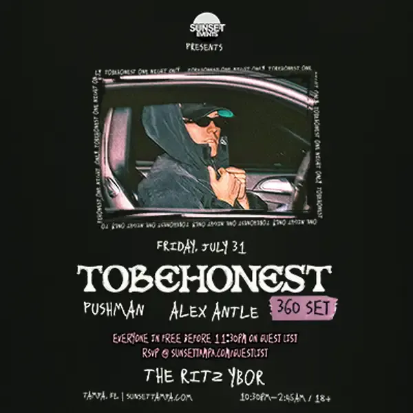 For guaranteed valid tickets, please purchase only from ticket links via sunsettampa.com and theritzybor.com. We also strongly suggest purchasing tickets in advance to avoid a sellout. We reserve the right to change artists and times of show at our discretion.