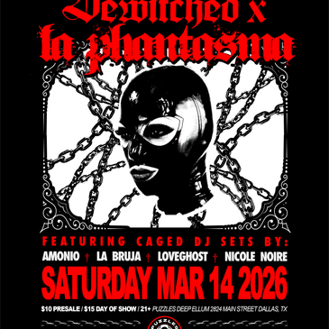 Bewitched and La Phantasma are coming to Puzzles Deep Ellum featuring caged DJ sets by Amonio, La Bruja, Loveghost, and Nicole Noire! More tickets will be available day of show.
