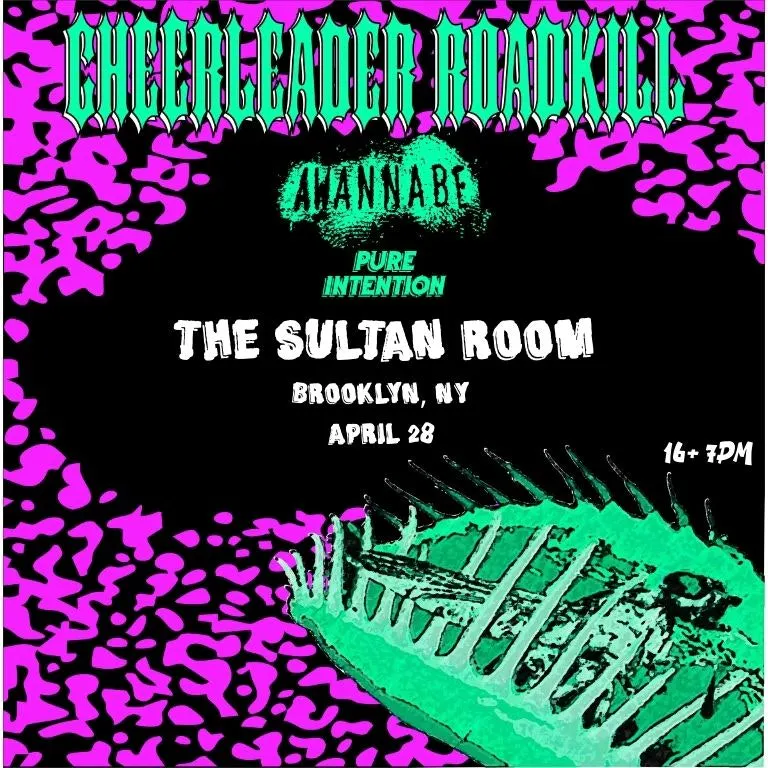 ***Cheerleader Roadkill, Awannabe, Pure Intention*** Presented by The Sultan Room. This is a 16+ event. Under 16 admitted with legal guardian.