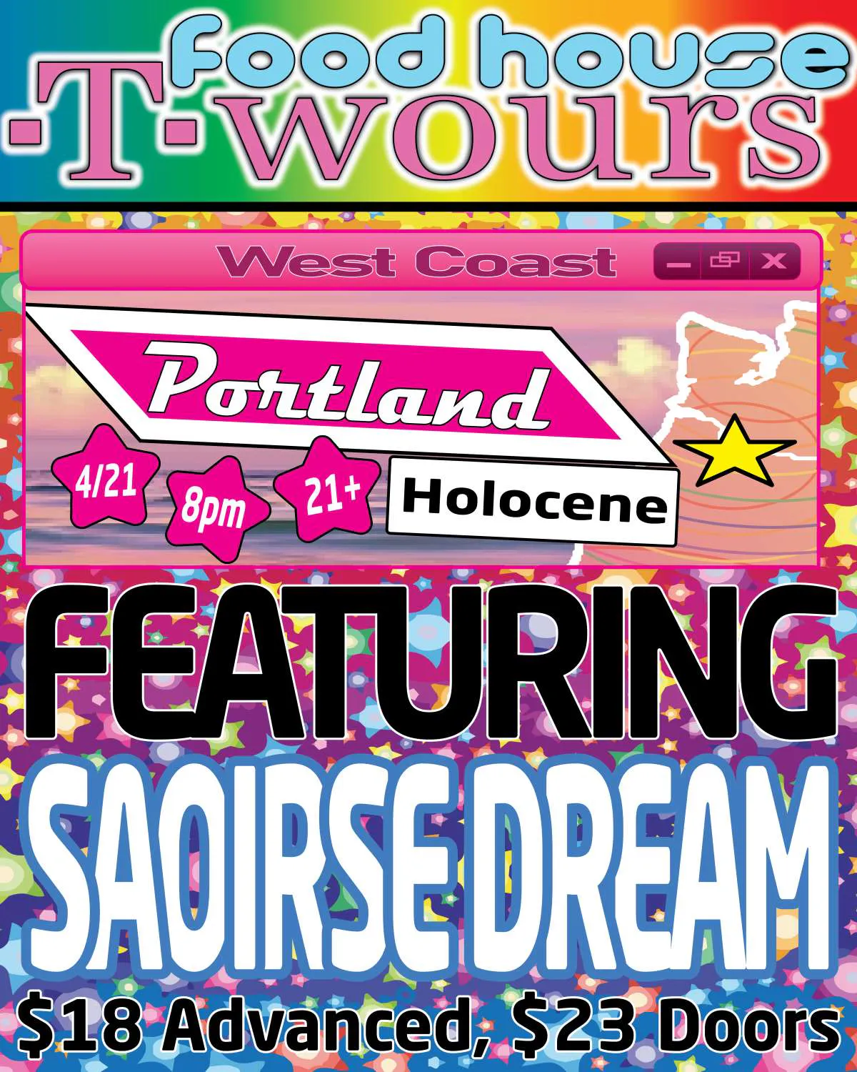 pandemic, with their debut single “Thos Moser”, bringing them into the sphere of the PC Music era, partaking in events alongside notable artists such as A.G Cook, Umru,100 Gecs, etc. This year, Food House will be bringing a whole new performance to the stage, exhibiting their legendary work as a duo while also trailing the releases of their solo projects. Beholding an energetic and eclectic community wherever they go, this mini tour will be nothing short of dancing the night away to the most irresistibly outrageous upbeat frequencies.