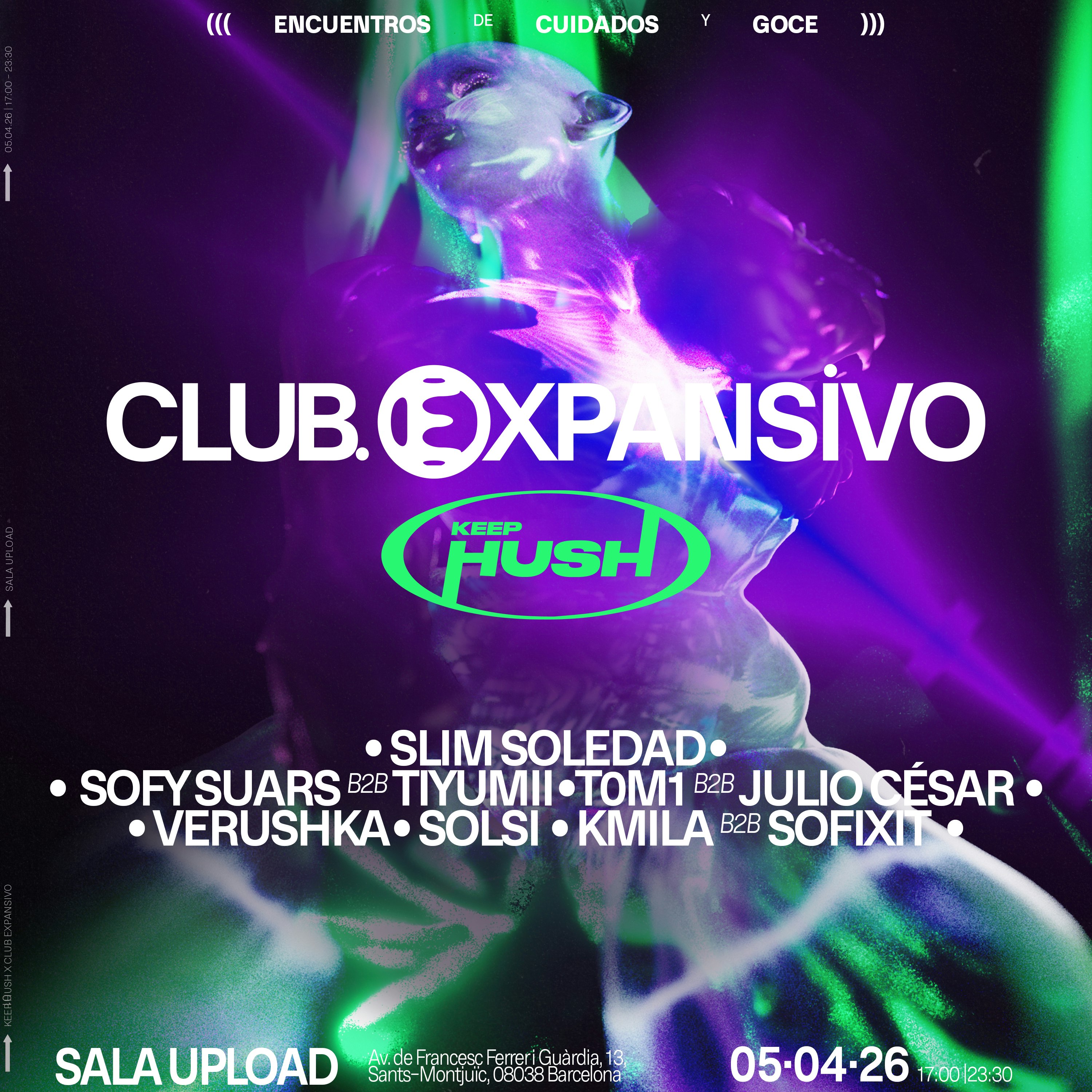 Club Expansivo marca un nuevo capítulo tomando lugar en Barcelona, esta vez de la mano de Keep Hush en su primera colaboración. La fuerza de la autogestión unida a esta plataforma internacional compartiendo la misma visión: pista de baile como lugar de manifiesto, celebración y resistencia.