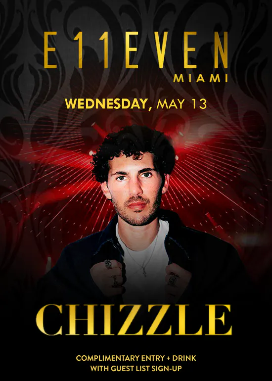 Chizzle at E11EVEN Wednesday, May 13. Complimentary Entry + a Drink with Guest List Signup. #1 Club in the USA, #6 Globally by Nightlife International Association.
