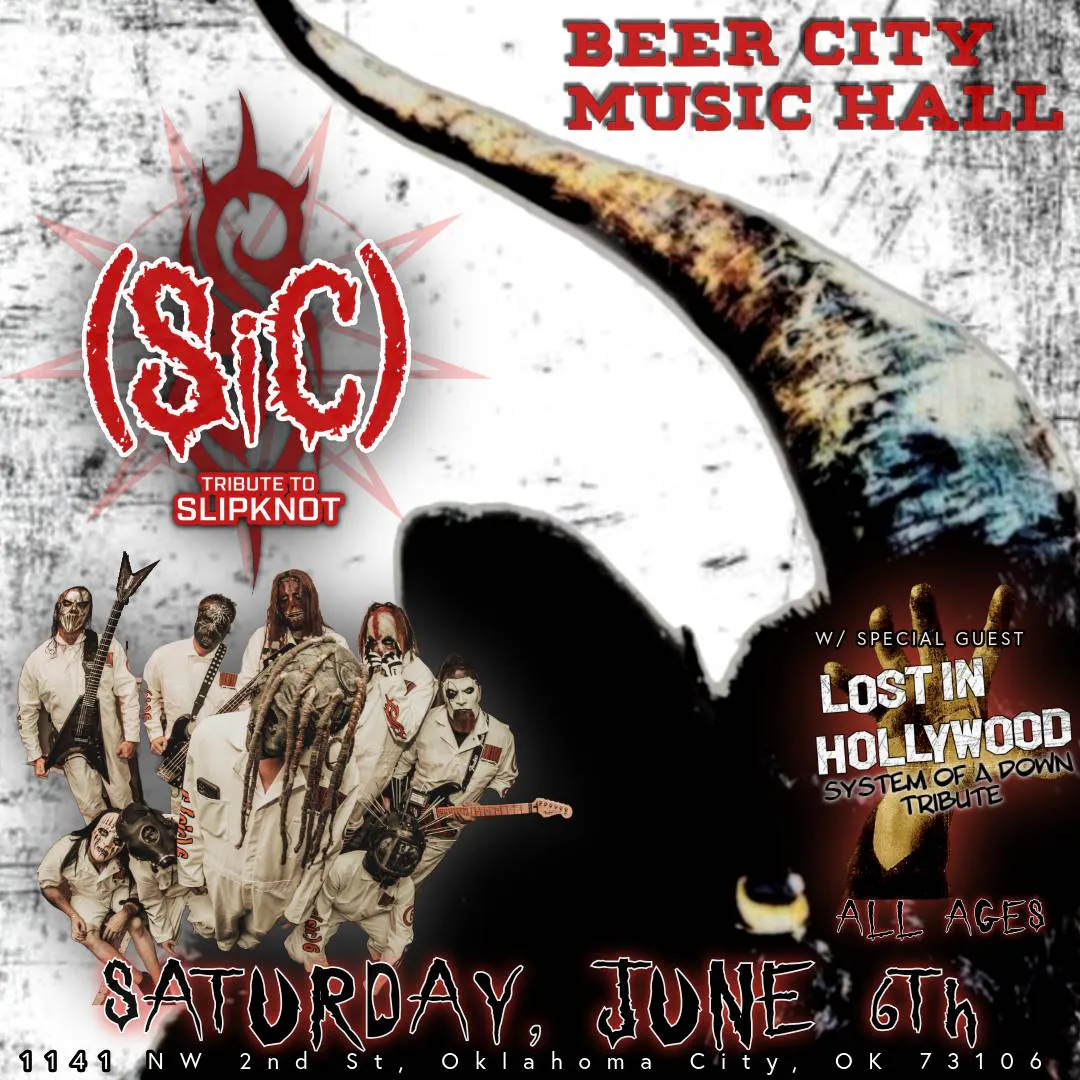SiC (Slipknot Tribute) & Lost In Hollywood (System of a Down Tribute) are bringing the heat to Beer City Music Hall in OKC on Saturday, June 6.