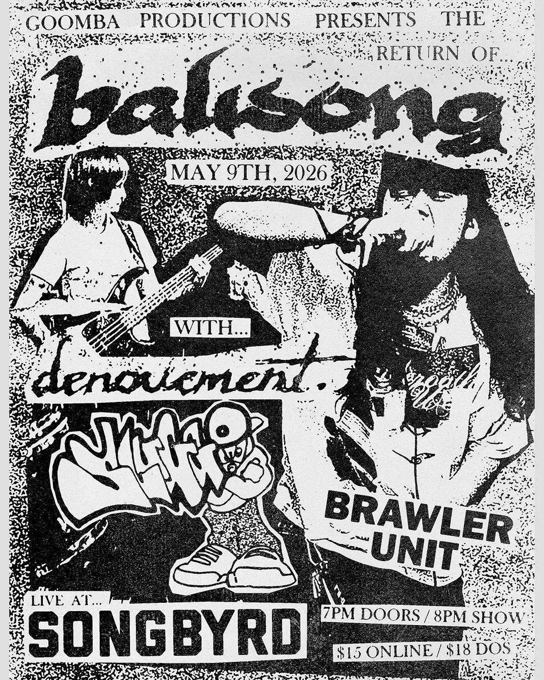Goomba Productions Presents: Balisong (DC Metalcore) Denouement. (DMV Metalcore) Sluggo (DC Hardcore) Starveling (Members of Mondarary) Presented by Goomba Productions All ages